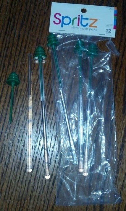 Then you will need some kind of spike. I used these great drink stirrers I found on amazon. You pull the green stirrer out of the clear plastic holder and use the green portion. You can also use toothpicks.