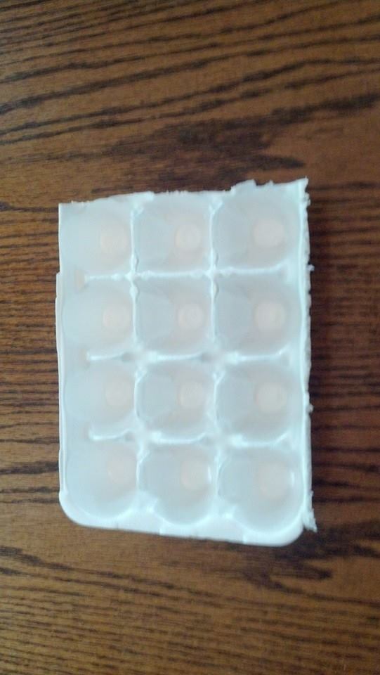 First take an egg carton and cut it with a knife or scissors so you are left with a carton 4 wells across and 3 wells deep.